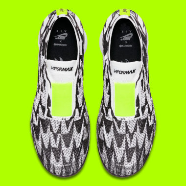 Des éléments graphiques noirs et blancs sont déclinés sur l’ensemble de l’empeigne basse construite dans une pièce de Flyknit. Leur présence offre un look moderne à la paire. Enfin, la bulle d’air caractéristique de la Vapormax se pare, pour une partie, d’un traitement opaque inédit et résolument original. Elle est totalement claire sur le devant de la semelle.