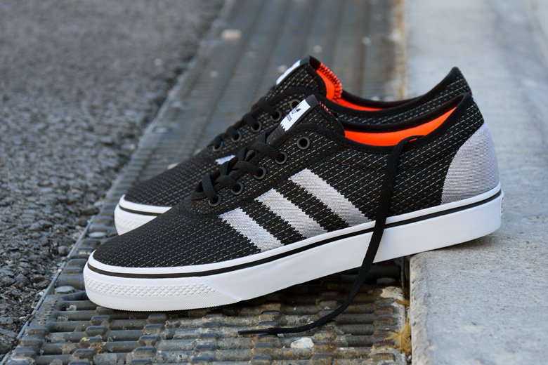 Cette silhouette plutôt simple avec sa semelle vulcanisée a été déclinée dans de nombreuses versions ces dernières saisons. On la retrouve pour la collection printemps/été 2015 dans ce combo plutôt sobre mêlant du gris avec du noir. L’originalité de cette nouvelle adidas Adi Ease réside dans la manière dont a été confectionnée la paire avec son empeigne tissée (woven). On le voit assez bien sur les photos, au niveau des 3 bandes notamment, que tout est réalisé dans une seule pièce.
