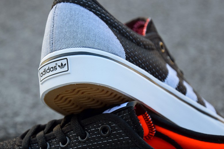 Cette silhouette plutôt simple avec sa semelle vulcanisée a été déclinée dans de nombreuses versions ces dernières saisons. On la retrouve pour la collection printemps/été 2015 dans ce combo plutôt sobre mêlant du gris avec du noir. L’originalité de cette nouvelle adidas Adi Ease réside dans la manière dont a été confectionnée la paire avec son empeigne tissée (woven). On le voit assez bien sur les photos, au niveau des 3 bandes notamment, que tout est réalisé dans une seule pièce.