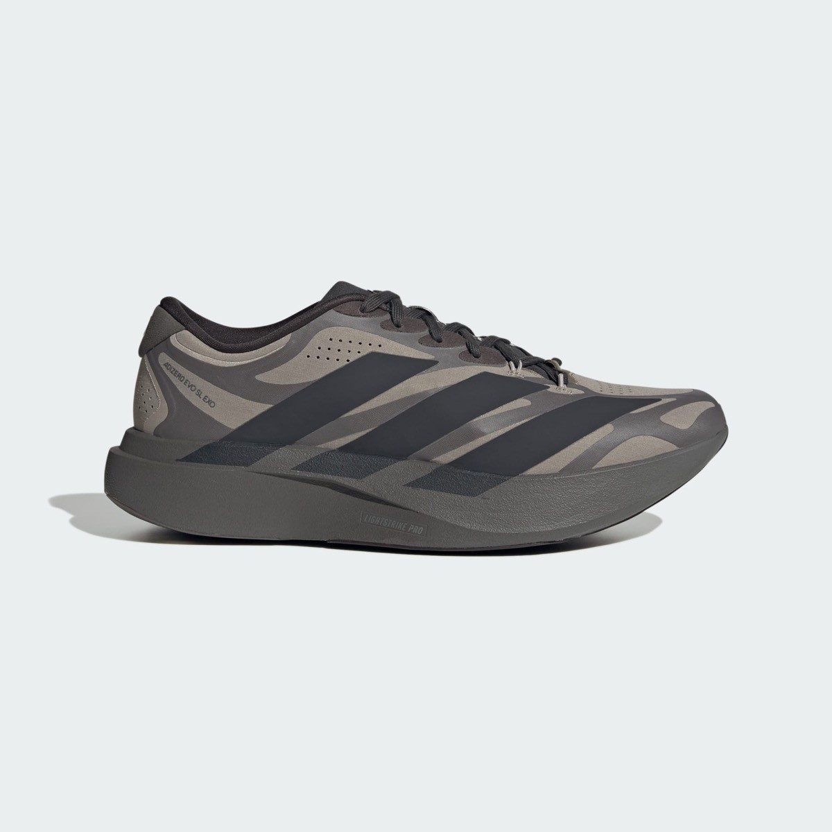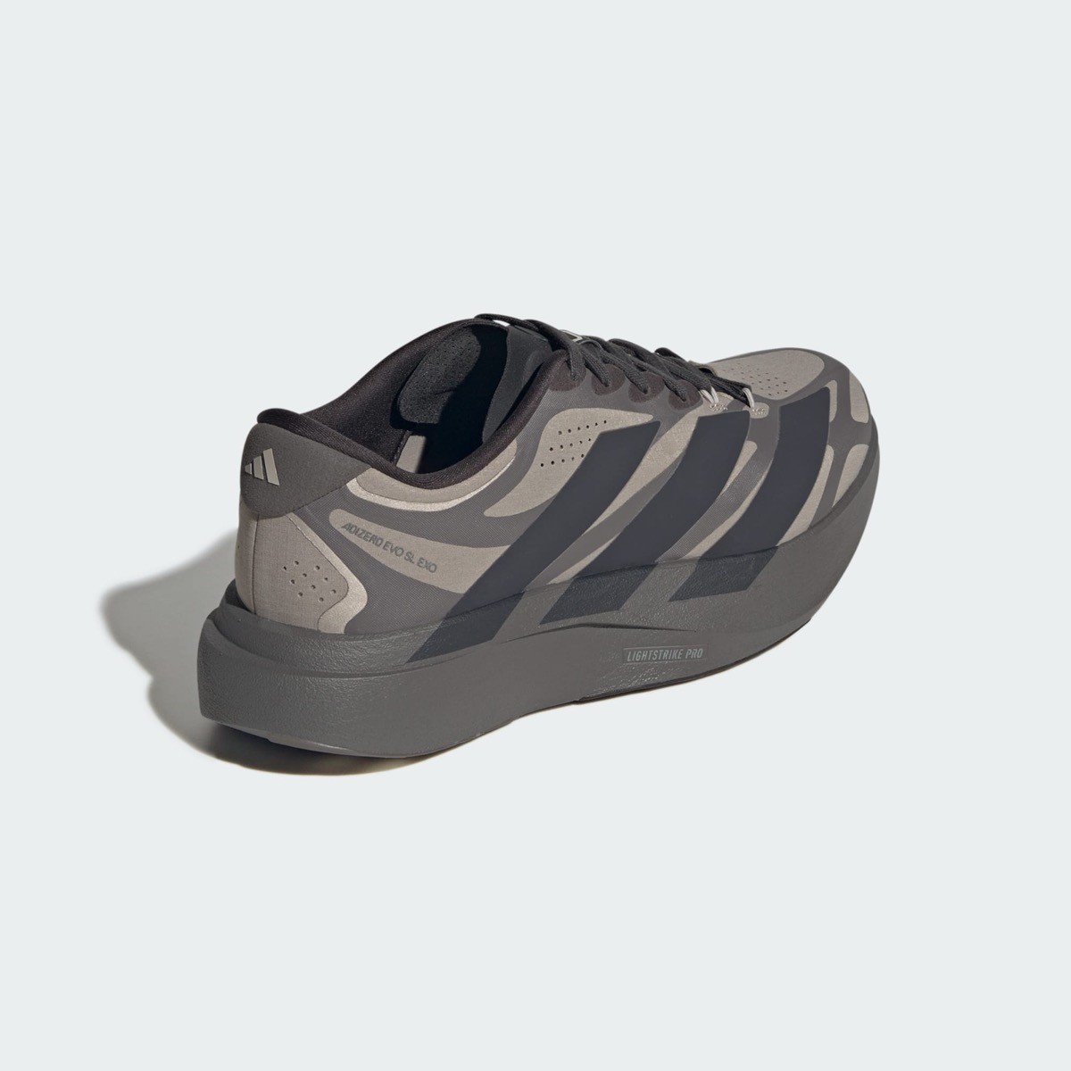 La structure de la adidas Adizero EVO SL EXO s’appuie sur la base ultra-légère de la gamme running d’adidas, mais réinvente nombre d’éléments. La tige adopte une construction technique très fine, presque monolithique, qui semble envelopper le pied comme une seconde peau. Un exosquelette thermocollé renforce la sneaker et lui confère un style presque futuriste. L’imposante semelle intermédiaire assure un amorti confortable, à la fois adapté à la course mais aussi aux longues marche avec style. Ce nouveau design résume le souhait d’adidas : créer une sneaker capable d’accélérer aussi bien sur piste qu’en ville, tout en conservant un style affirmé.