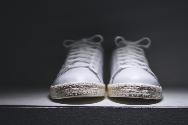 La collection printemps/été 2015 sera un peu plus réussie. Tout est simple et sobre et c’est à se demander si l’intervention de Nigo est nécessaire. Mais ça nous plait. Après l’adidas Stan Smith Velcro dans les couleurs basiques du modèle, c’est l’adidas Campus 80’s qui sera déclinée de la même façon. La paire est en cuir blanc, mêmes ses bandes, et son talon utilise le vert cher à la Stan Smith. On reconnait également le traitement vintage appliqué aux semelles extérieures légèrement jaunies.