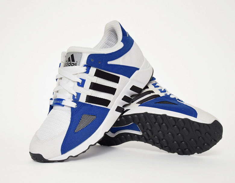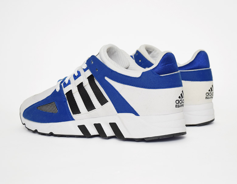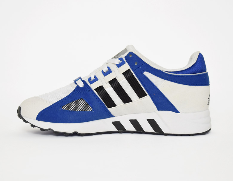 Cette version de l’adidas Equipment Running Guidance dispose de plusieurs touches de bleu roi à différents endroits comme au talon, au niveau des oeillets et sur chaque panneau sous forme de feutrine.