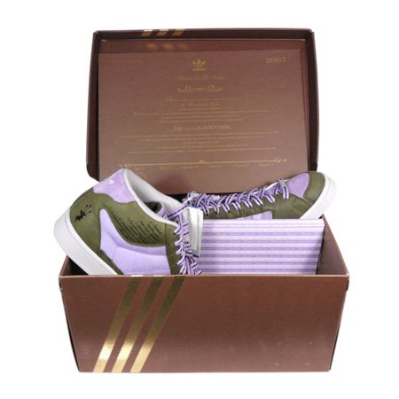 L’un des deux modèles consacrés à l’Italie est déjà disponible dans vos boutiques vendant ADIDAS. Les matériaux et coloris utilisés rappellent une certaine Super Skate A Bathing Ape. La paire italienne, plutôt réussie, s’inspire de la lavande italienne. La France aurait pu hériter d’un tel coloris avec sa lavande provençale mais on a eu le droit au beaujolais, dommage pour nous ! Découvrez la photo du magnifique packaging (dans la suite) comme on aimerait en voir beaucoup plus souvent chez d’autres marques…