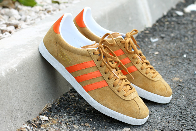 Les premières paires de sneakers des collections automne/hiver 2013 commencent à arriver. adidas a notamment prévu d’éditer quelques nouveaux coloris sur son adidas Gazelle OG. La première à sortir est en daim beige avec les bandes et son talon de couleur orange.