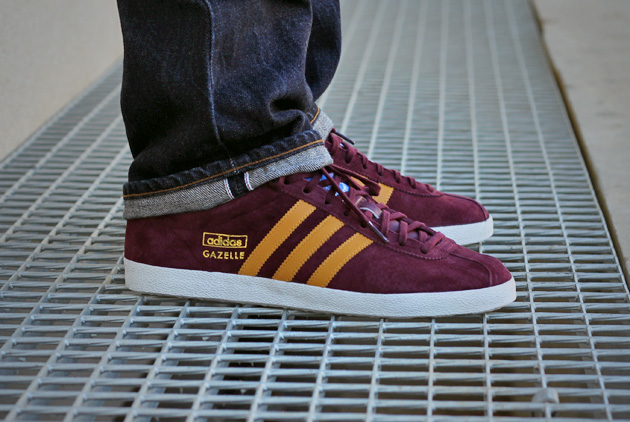 adidas avait pour habitude de sortir des adidas Gazelle OG le plus souvent monochromes. Cette saison, la marque a décidé de décliner son emblématique modèle avec un peu plus de couleurs (même si les versions restent toujours très sobres). Après la adidas Gazelle Bleu/Rouge, voici une série associant du bordeaux et du jaune. Les amateurs de football américain reconnaitront le coloris des Redskins. Ce modèle est accompagné de deux paires de lacets, bordeaux ou blanc.