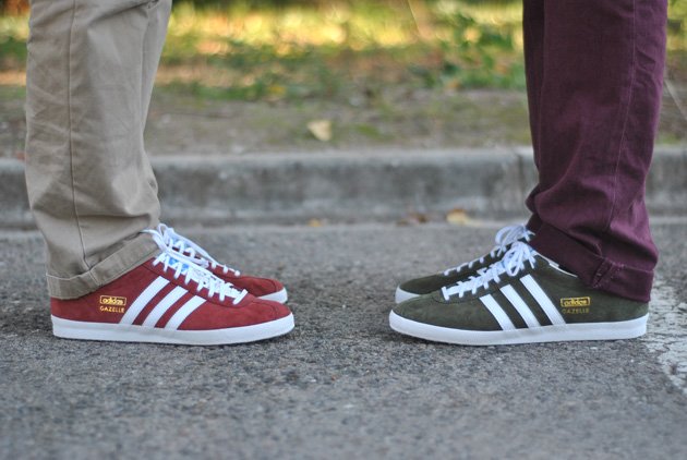 Adidas édite de nouveaux coloris de son modèle Adidas Gazelle OG pour sa collection automne/hiver 2012 : Adidas Gazelle Khaki et Adidas Gazelle Rouge. Toutes les paires sont disponibles en ligne sur SNKRS et présentées plus en détails dans la suite de cette news.