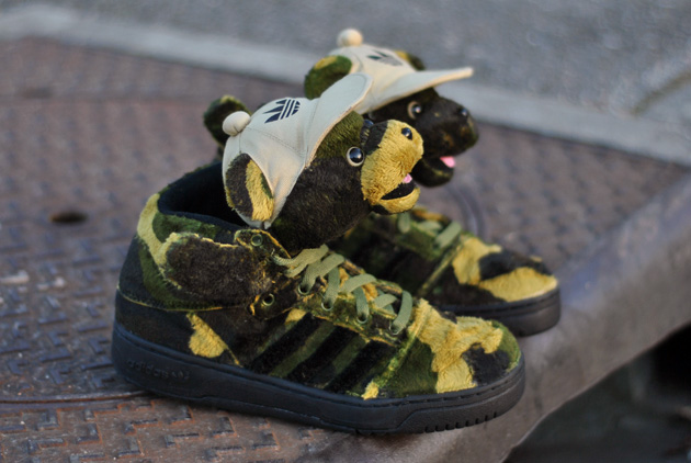 Le designer New-Yorkais Jeremy Scott ressort ses bears dans une version inédite en camouflage. Chaque ourson porte une petite casquette beige avec le logo adidas. Ces adidas Jeremy Scott Bear Camo sont disponibles en ligne sur SNKRS.