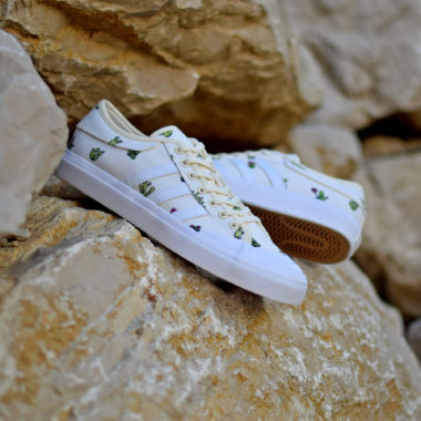 Après s’être déclinée de diverses façons pour des sorties en éditions limitées avec dernièrement la collection avec Hardies ou pour le skateur Marc Johnson, on retrouve cette paire dans une toute nouvelle version pour la collection printemps/été 2017. Cette sneaker est proposée avec une tige basse et une construction mêlant la toile et son fameux Toe-Cap en caoutchouc (la partie résistante à l’avant du pied permettant une bonne durabilité de la skate-shoe). La touche d’originalité de la paire est cet imprimé cactus appliqué discrètement sur la toile au coloris jaune pâle.