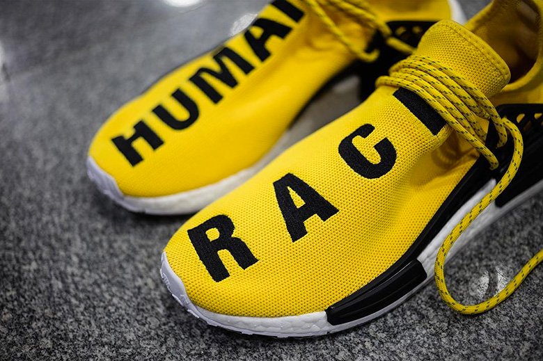 Il s’agit en effet d’une toute nouvelle version du modèle plébiscité ces temps-ci chez la marque aux trois bandes, l’adidas NMD. D’après les premières images qui commencent à circuler, cette paire dispose d’un chausson fait d’une pièce de mesh et de passants de lacets placés à l’arrière de la sneaker avec une cage, un peu à la manière des futures adidas NMD XR1. Sur chaque pied on retrouvera une broderie faisant figurer l’inscription « Human » pour le pied droit et « Race » pour le gauche.