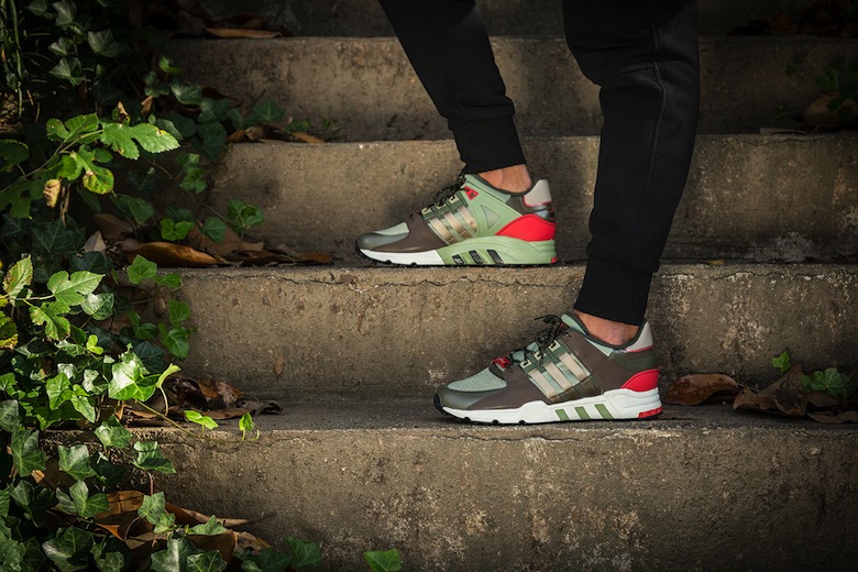 Récemment dévoilée sur la toile, cette paire de sneakers dispose déjà d’un surnom du fait qu’elle emprunte un code couleurs qui est cher à l’enseigne de luxe italienne Gucci. En effet, cette adidas Originals EQT Support arbore une empeigne faite de matériaux mêlant du marron, du vert olive ou encore du rouge. Elle conserve son design original bien que nous pouvons noter la présence du matériau réfléchissant 3M sur les empiècements en plastique situé au niveau de la cheville. Cette adidas Originals EQT Running Support 93 est proposée avec une paire de lacets ronds khaki tachetés blanc qui vient parfaitement embellir cette silhouette.