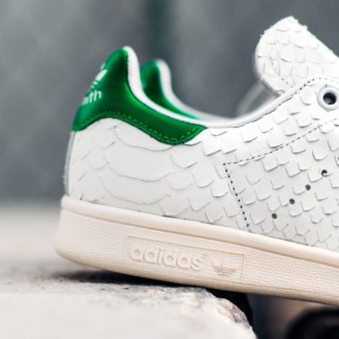 La marque aux trois bandes sait rendre hommage à ses sneakers les plus plébiscitées en leurs appliquant de temps à autre des matériaux de qualité supérieure. adidas nous le prouve une fois de plus pour la saison automne/hiver 2016 avec deux de ses classiques que sont l’adidas Superstar et l’adidas Stan Smith. Ces dernières conservent leurs coloris emblématiques avec les fameuses touches de vert pour la Stan Smith et un contraste de blanc et de noir pour la Superstar. L’originalité est ici apportée avec l’utilisation de cuir peu fréquent pour ce type de silhouette. Ces deux sneakers disposent en effet d’empeignes faites de cuir nubuck retravaillé pour donner l’impression d’une peau de serpent.