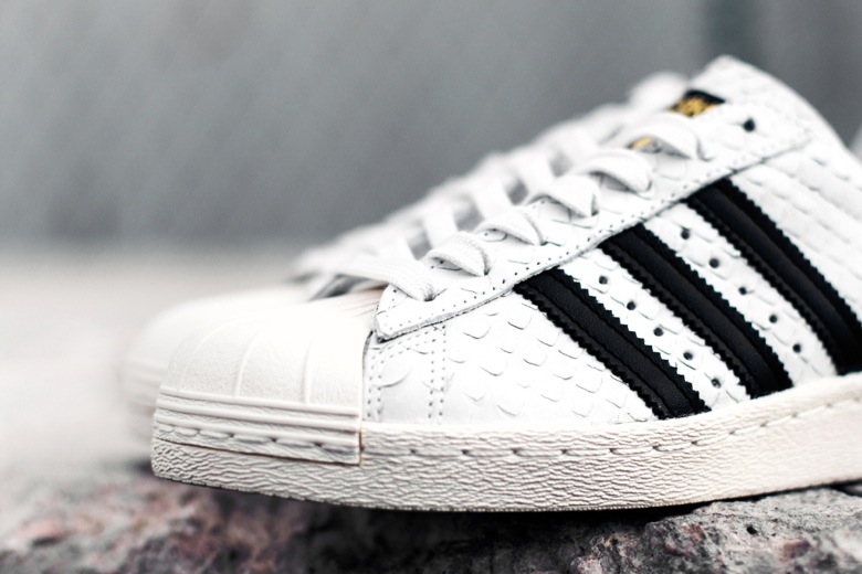 Deux sneakers classiques de chez adidas Originals avec un cuir snakeskin.