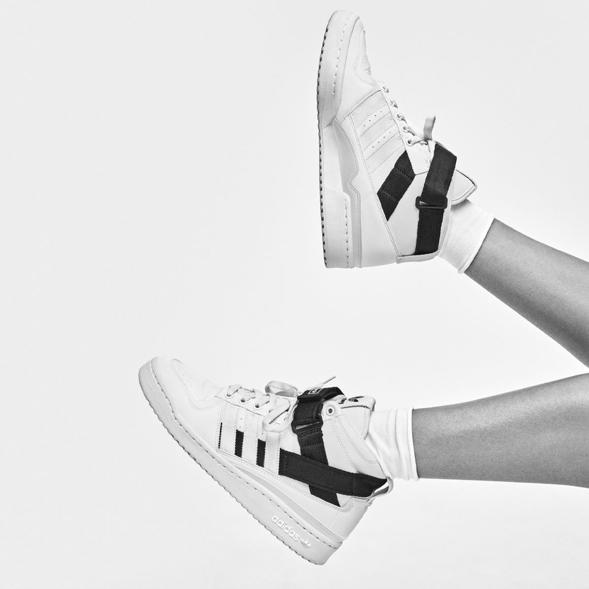 L’autre classique remis au goût du jour écologique, est la adidas Forum Mid Parley. La tige semi-montante est en cuir blanc, à laquelle que des renforts en tissu viennent apporter du relief. Ils sont blancs sur les passages de lacets, crème sur les trois bandes latérales, ou encore noirs sur le strap autour de la cheville. C’est également en noir que l’on retrouve le logo trèfle sur la languette, accompagné de l’inscription Parley. À l’instar de la Stan Smith Parley, la Forum Mid possède une semelle intermédiaire crème, embossé d’un logo adidas à l’arrière et contenant du Boost.