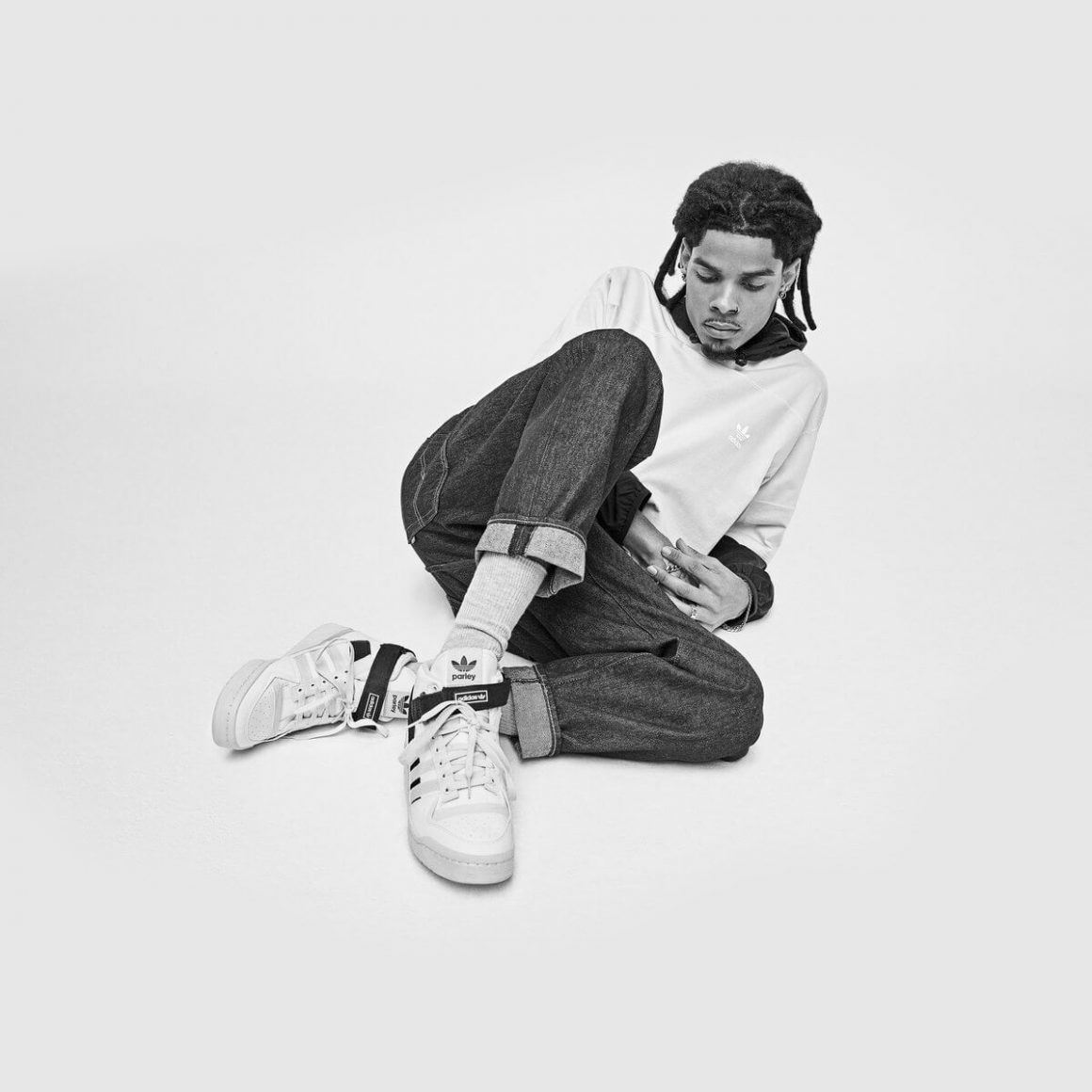 L’autre classique remis au goût du jour écologique, est la adidas Forum Mid Parley. La tige semi-montante est en cuir blanc, à laquelle que des renforts en tissu viennent apporter du relief. Ils sont blancs sur les passages de lacets, crème sur les trois bandes latérales, ou encore noirs sur le strap autour de la cheville. C’est également en noir que l’on retrouve le logo trèfle sur la languette, accompagné de l’inscription Parley. À l’instar de la Stan Smith Parley, la Forum Mid possède une semelle intermédiaire crème, embossé d’un logo adidas à l’arrière et contenant du Boost.