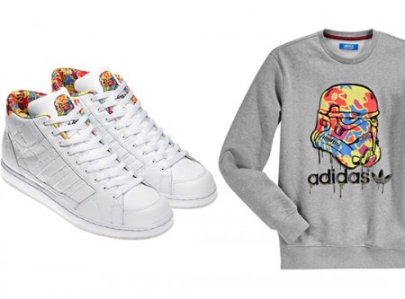 Adidas continue son programme Star Wars pour 2011 avec ce « Artist Fusion Pack ». Plusieurs vêtements ainsi qu’une paire de sneakers sont prévus. On remarque l’utilisation d’un monogramme incrusté (embossed) qui utilise le même procédé que la Adidas Superstar A Bathing Ape.
