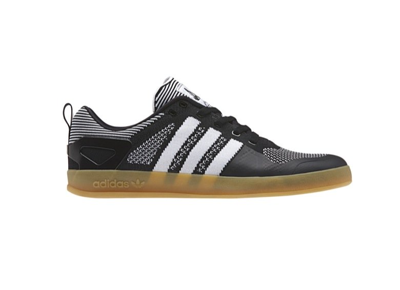 PALACE n’a pas travaillé sur des silhouettes déjà établies. C’est un tout nouveau modèle qui s’apprête à sortir et qui porte le nom du label, l’adidas Palace Pro Trainer. Il existe plusieurs déclinaisons de l’adidas Palace Pro, en Primeknit ou en daim. La version Primeknit, adidas Palace Pro Trainer Primeknit, sera disponible dans une version toute blanche, parfaite pour les beaux jours. L’autre coloris rendra plutôt hommage aux chaussures de football adidas avec ce coloris noir et blanc et sa semelle gum. L’adidas Palace Pro Trainer sans Primeknit est en daim gris clair perforé (elle existe aussi en noir/blanc). Plus sobre, moins technique, elle arbore le nom de la marque sur l’une des 3 bandes. Le fameux logo Palace est présent sur toutes les languettes. Et c’est la semelle extérieur de l’adidas Gazelle indoor qui a été utilisée.