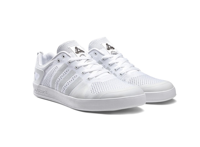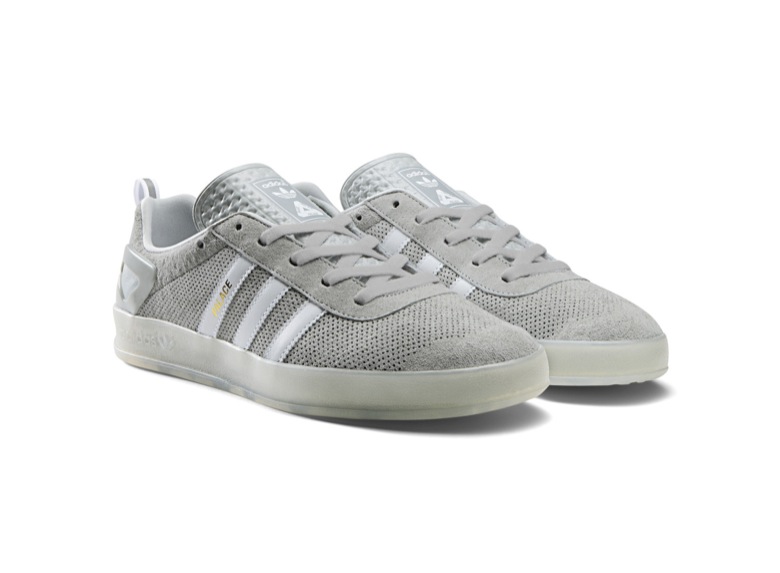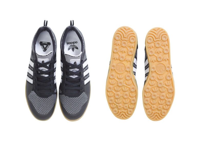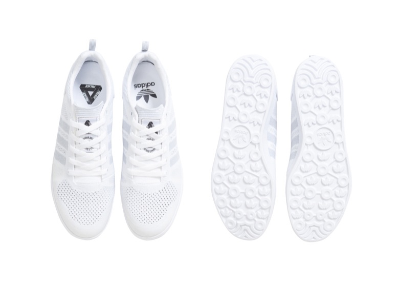 PALACE n’a pas travaillé sur des silhouettes déjà établies. C’est un tout nouveau modèle qui s’apprête à sortir et qui porte le nom du label, l’adidas Palace Pro Trainer. Il existe plusieurs déclinaisons de l’adidas Palace Pro, en Primeknit ou en daim. La version Primeknit, adidas Palace Pro Trainer Primeknit, sera disponible dans une version toute blanche, parfaite pour les beaux jours. L’autre coloris rendra plutôt hommage aux chaussures de football adidas avec ce coloris noir et blanc et sa semelle gum. L’adidas Palace Pro Trainer sans Primeknit est en daim gris clair perforé (elle existe aussi en noir/blanc). Plus sobre, moins technique, elle arbore le nom de la marque sur l’une des 3 bandes. Le fameux logo Palace est présent sur toutes les languettes. Et c’est la semelle extérieur de l’adidas Gazelle indoor qui a été utilisée.