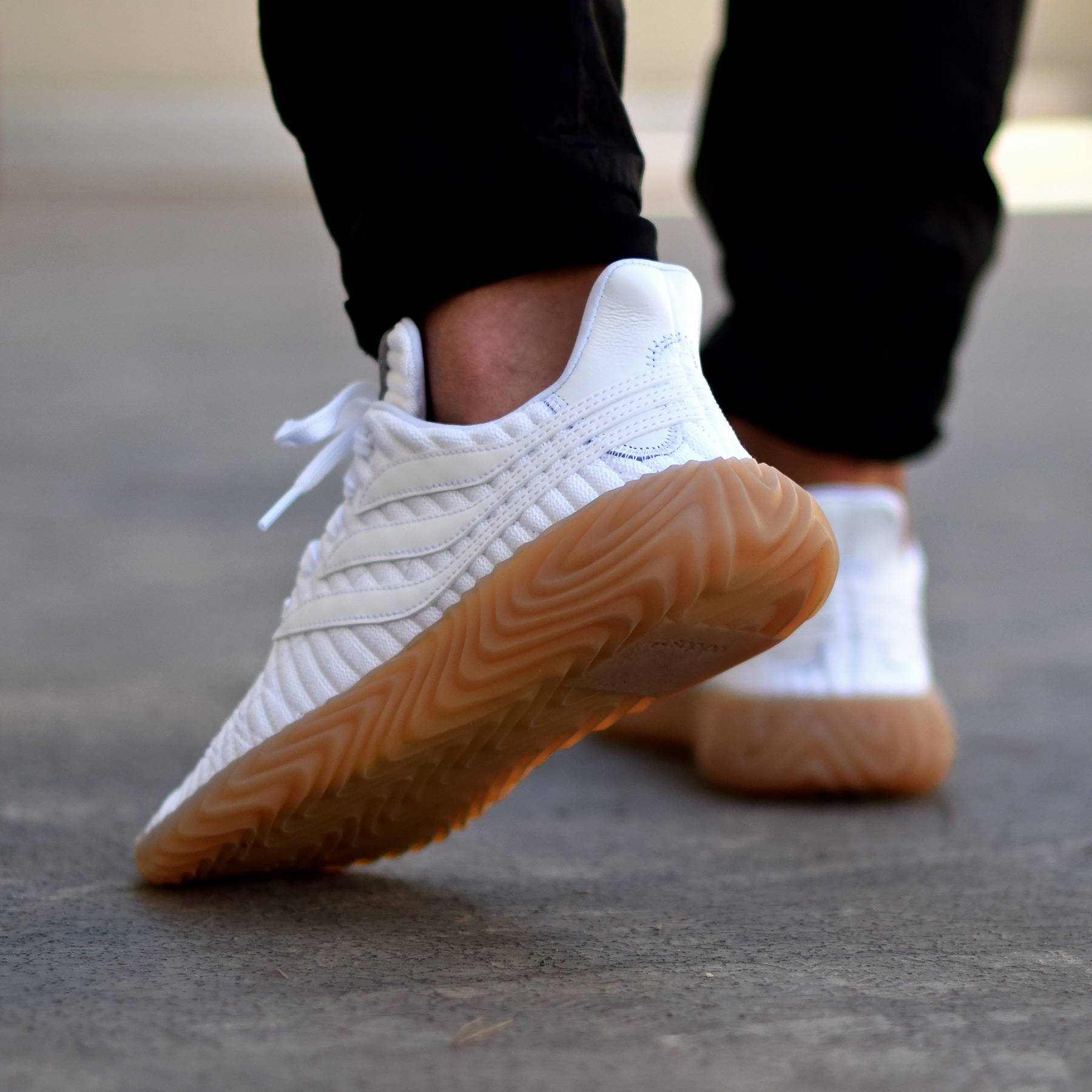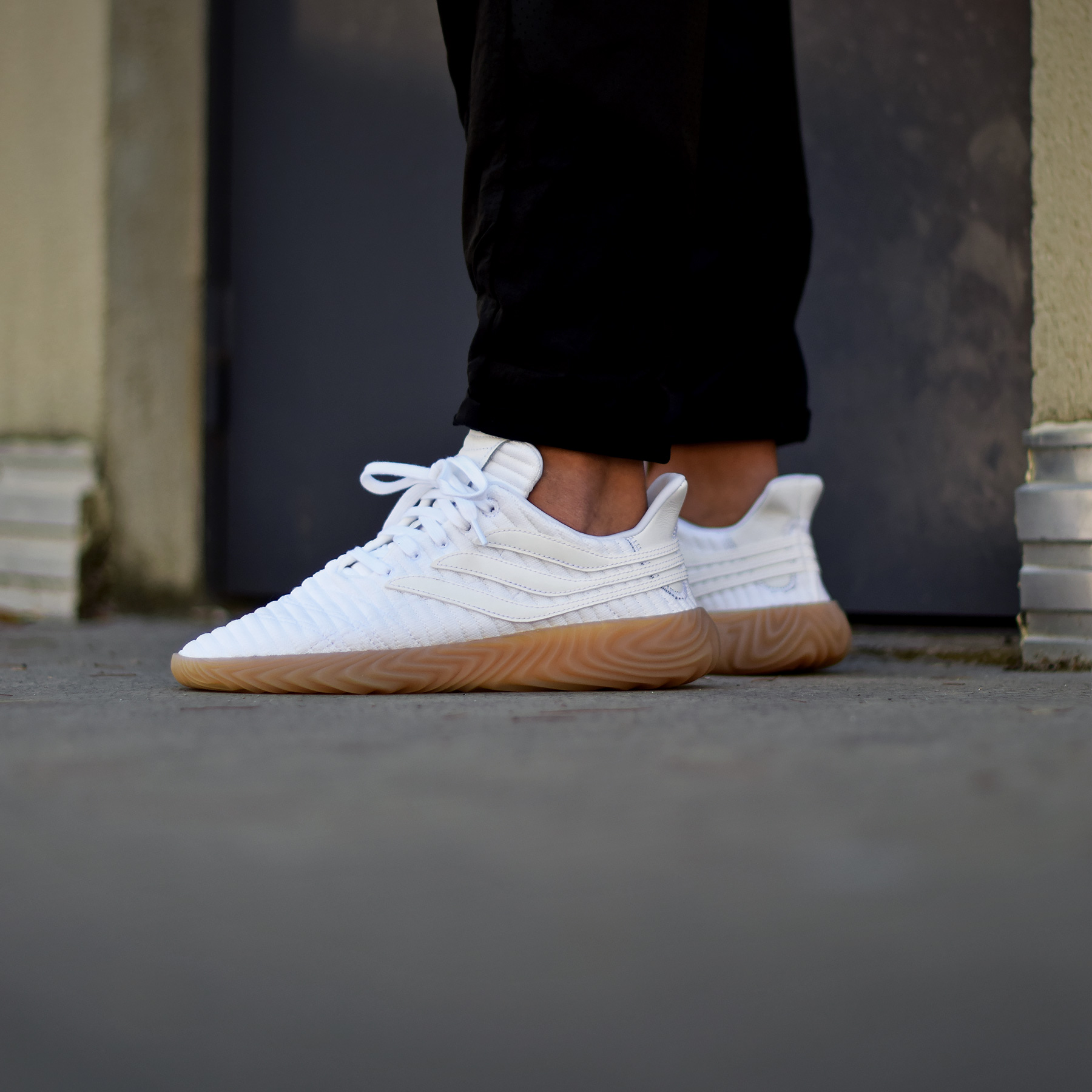 Adidas décline sa nouveauté d’inspiration football, l’adidas Sobakov, dans une version blanche et gomme.