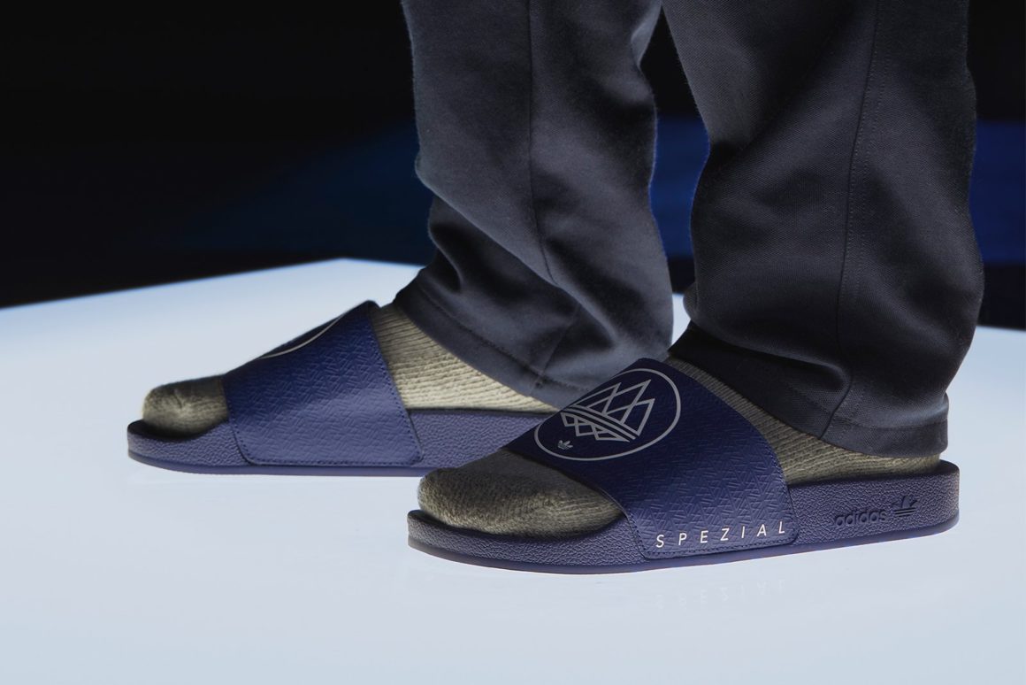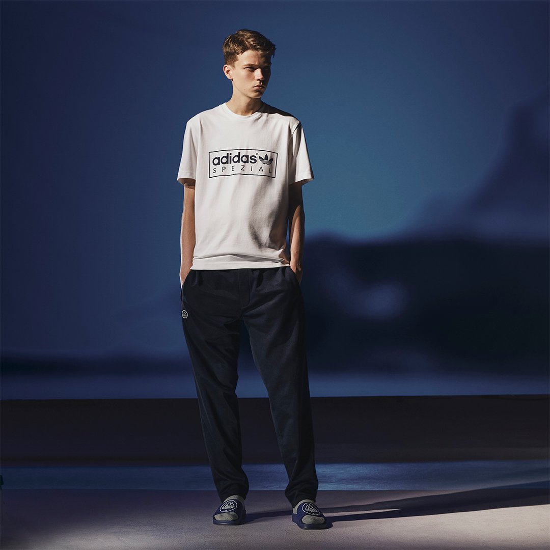 Plusieurs sneakers seront proposées, en commençant par l’adidas Aderley SPZL, un modèle hybride basé sur la Rod Laver Vintage présentant une tige en mesh blanc avec des détails bleu clair. La Newrad SPZL reprend la conception de la Bermuda et est proposée dans une robe marron clair parfaite pour l’automne. L’adidas HRMNY SPZL dotée de la technologie Torsion fait un retour tonitruant. Basée sur l’adidas Harmony, une paire pour femmes, la silhouette est revue au niveau de la construction et du coloris. Une paire de claquettes, l’Adilette SPZL, vient étoffer le catalogue.