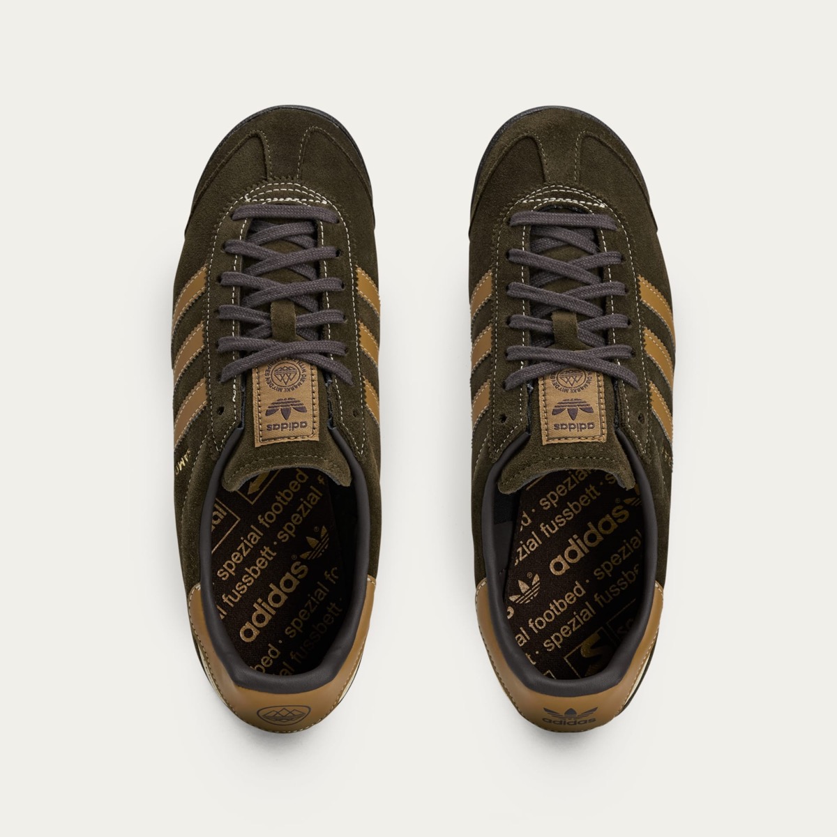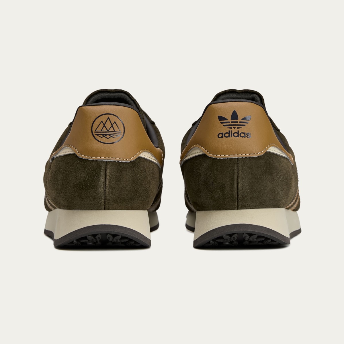 Avec la adidas Samoa II SPZL, la collection fait un clin d’œil aux années 80. Sa combinaison devait olive profond et de bronze lui confère un charme vintage assumé, rappelant les classiques de l’époque.