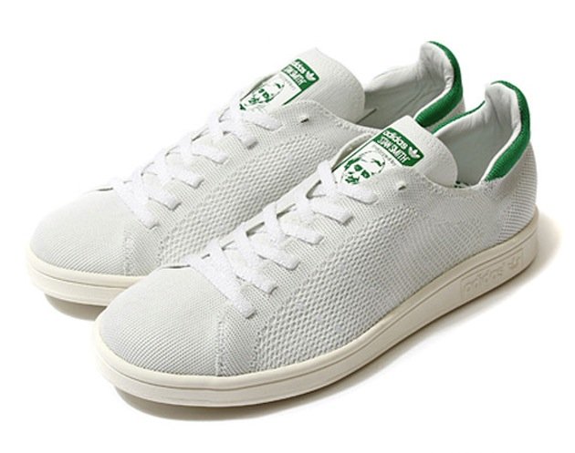 adidas avait annoncé sa volonté d’étendre sa nouvelle technologie Primeknit sur différents modèles. Après l’adidas Campus, c’est au tour de la Stan Smith d’être déclinée dans ce matériau. La Stan Smith a marqué son grand retour au début de l’année 2014, et la marque aux trois bandes n’en finit pas de la décliner (collaboration, couleurs, matériaux). Tout en gardant le coloris original blanc et vert, le modèle se voit quelque peu modifié avec la disparition du logo adidas sur le talon. Cette paire est fabriquée en Allemagne et est disponible sur le shop en ligne d’Invincible.