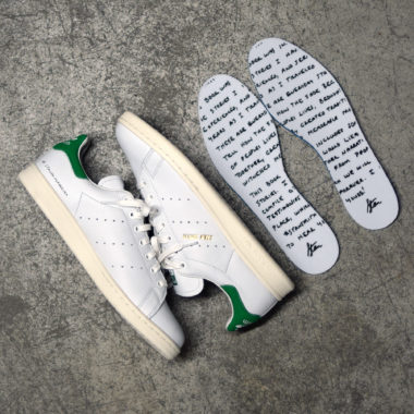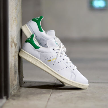 Néanmoins, cet hommage se veut avant tout très sobre et la paire conserve bon nombre d’éléments qui ont fait d’elle le mythe qu’elle est aujourd’hui. La chaussure s’affiche dans le code couleur classique White/Green, l’un des coloris originels de la paire sortie il y a quarante ans, retranscrit ici fidèlement. La construction est également classique, à base de cuir perforé à plusieurs reprises pour le look et le confort. La semelle est légèrement jaunie tandis que le faciès et la signature de Gentleman Stan sont apposés sur la languette, aux côtés du célèbre Trefoil d’adidas.