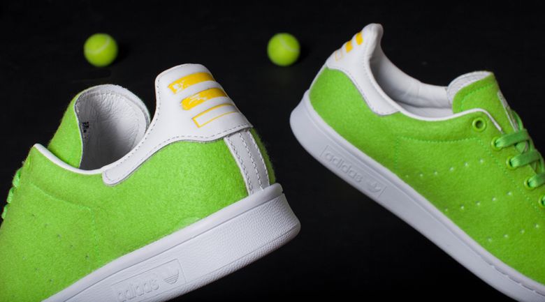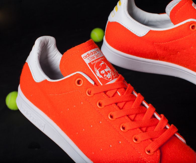 Cette fois-ci Pharrell a imaginé des adidas Stan Smith déclinées dans trois coloris (orange, gris et vert) en utilisant la matière en feutrine qui recouvre les balles de tennis. Un petit clin d’oeil au sport auquel était destiné le modèle à l’époque. Le logo à trois bandes, propre aux collaborations adidas x Pharrell, se retrouvera sur l’empiècement en cuir au talon des sneakers. Trois vestes « Tracktop » aux couleurs des paires, dans une matière satinée, viendront également compléter cet adidas Stan Smith x Pharrell « Tennis Pack » présenté en détails avec les images qui suivent.