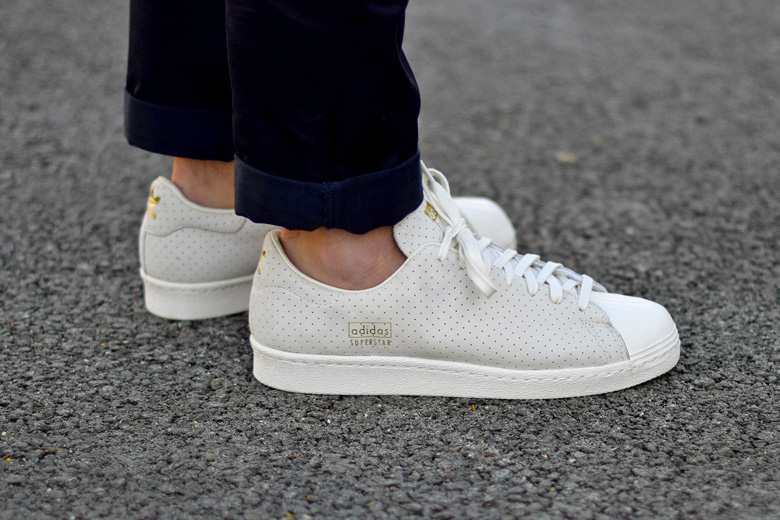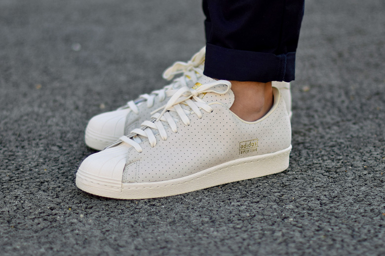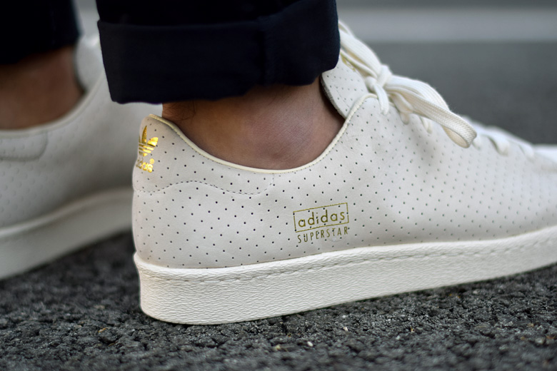 Pour la collection de la saison printemps/été 2016, c’est le retour de l’adidas Superstar 80s Clean. Comme son nom l’indique, la paire est très sobre et confectionnée dans des matières de très belle qualité. Pour ce duo, on retrouve notamment un cuir bien épais qui a été perforé dans son intégralité. Les trois bandes ont disparu pour un rendu plus élégant, et c’est le logo de l’époque qui est appliqué sur les cotés de chaque sneaker. Deux versions de l’adidas Superstar 80s Clean sont proposées : blanc ou noir.
