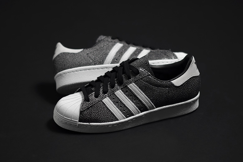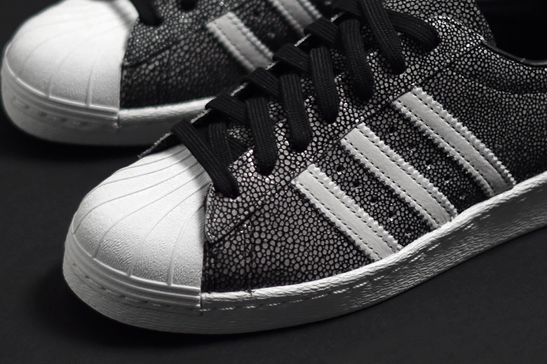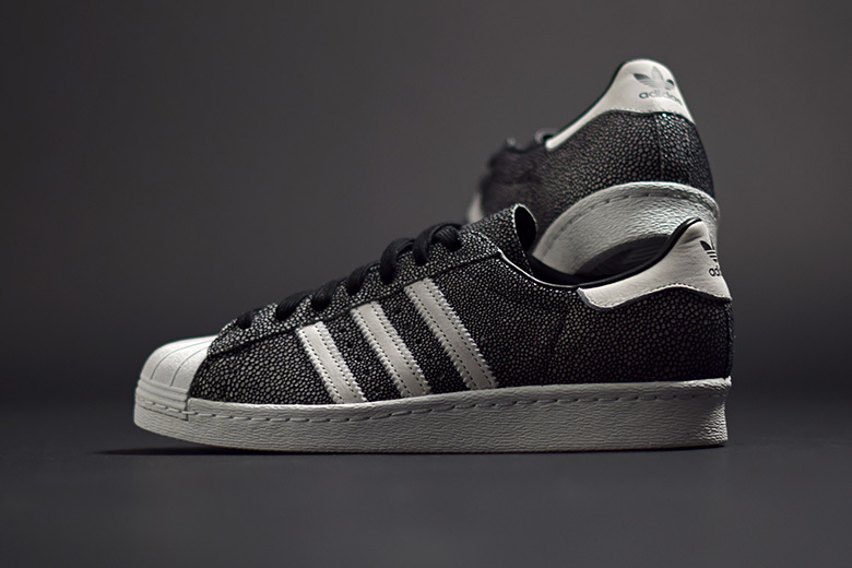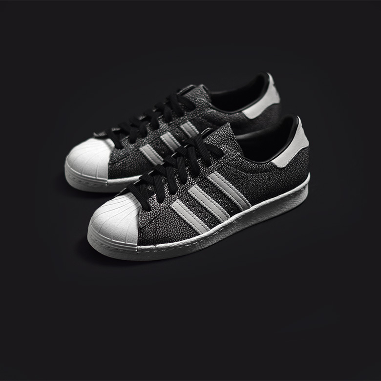 Une adidas Superstar 80’s recouverte de cuir galuchat pour l’été.