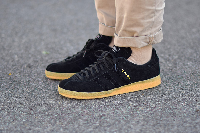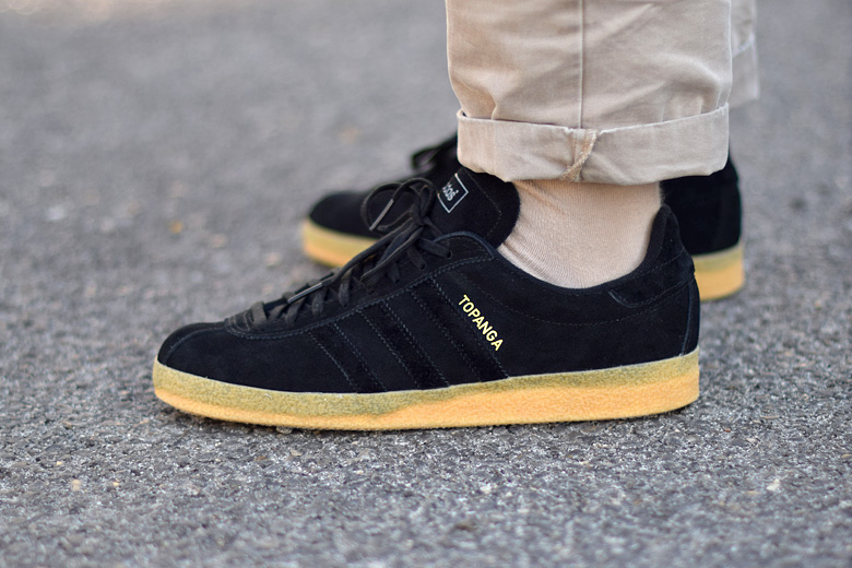 Pour la saison printemps/été 2016, c’est une nouvelle déclinaison très sobre qui vient de sortir. La paire est réalisée dans un daim noir. Elle est montée sur une semelle gum. La seule petite touche de couleur réside dans l’inscription TOPANGA en lettres dorées sur le coté extérieur de chaque sneaker. Les amateurs de la culture terrace apprécieront le rendu du modèle qui rappelle les meilleures réalisations adidas sur ce type de sneaker.