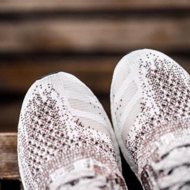 La marque aux trois bandes continue d’exploiter ce modèle qui connaît un énorme succès grâce notamment à sa tige en Primeknit légèrement montante en un seul tenant et sa semelle Boost si confortable. Cette version fraichement dévoilée est déclinée dans un mélange de blanc associé à des touches de marron foncé façon terre. La coque du talon est également dans cette teinte marron et on retrouve toujours les trois bandes thermocollées du côté intérieur sur l’avant du pied.