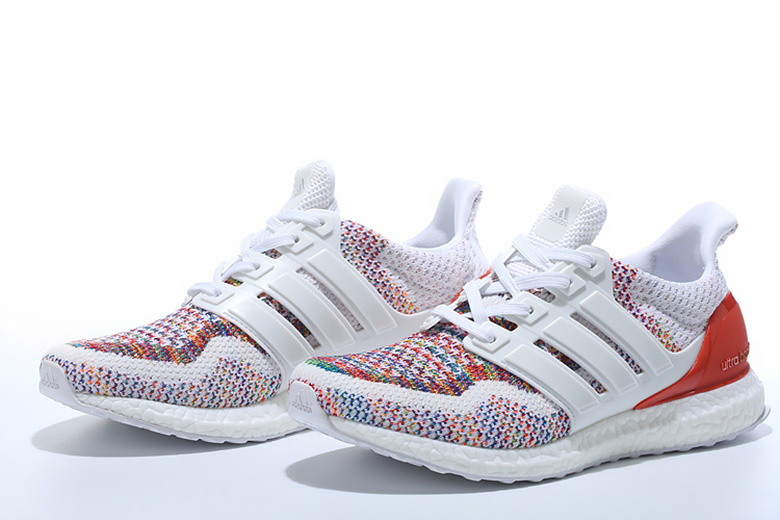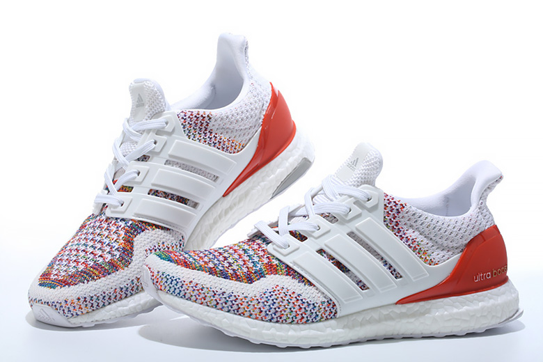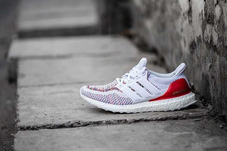 Pour l’été 2016, c’est avec une empeigne en adidas Primeknit au rendu tout à fait inédit que l’adidas Ultra Boost reviendra. En effet, le coloris appliqué sera parfaitement de saison puisqu’il sera principalement blanc avec un mélange de couleurs fort joliment réalisé. L’arrière de la sneaker sera rouge pour apporter un certain contraste.