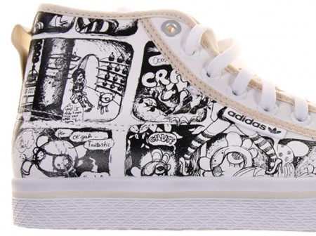 Ce n’est pas la première fois que l’artiste FAFI collabore avec Adidas. Pour cet automne, elle a imaginé deux modèles dont une Honey Mid assez réussie. Des extraits de sa future bande-dessinée sont apposés sur la paire. Les deux paires sont disponibles (tailles filles) chez Colette, découvrez plus d’images dans la suite.