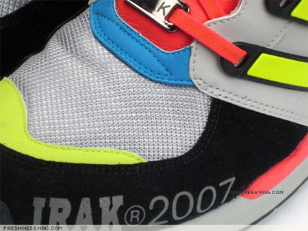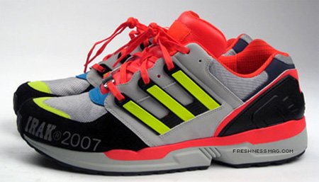 Non cette paire n’est pas réalisée pour la nouvelle équipe championne d’Asie (l’Irak a gagné la coupe d’Asie de football mais n’est pas sponsorisée par Adidas) c’est une collaboration avec IRAK, crew new yorkais de graffeurs, qui a lancé sa propre marque de vêtements il y a quelques années. Collaboration originale et assez inattendue de la part des trois bandes et qui laisse envisager surement d’autres sorties de ce genre d’ici la fin de l’année dans son programme consortium ! (freshness)