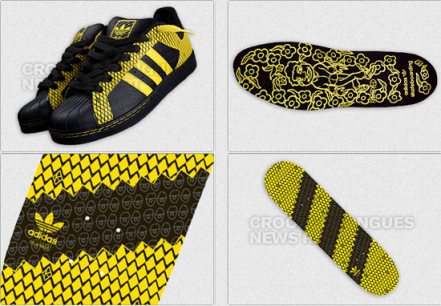 Adidas continue les collaborations sur sa ligne skateboard et sort une superstar avec Krooked SkateBoards. Un plateau reprenant le coloris sera offert dans quelques boutiques si vous achetez le modèle. Le design a été imaginé par l’ancien skateur pro Powell-Peralta Tommy Guerrero.