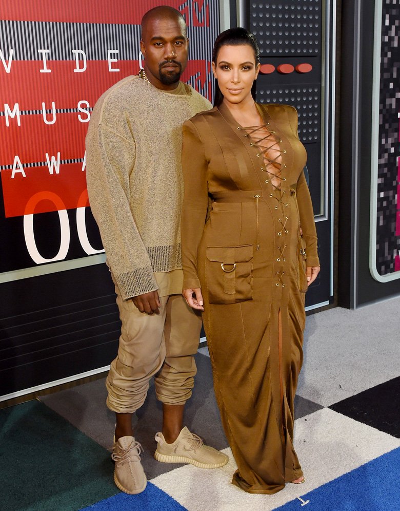 Kanye West a passé la soirée habillé avec les différentes pièces textiles de sa collection Yeezy Season 1 ainsi qu’avec une paire d’adidas Yeezy Boost 350 dans un coloris beige allant avec sa tenue.