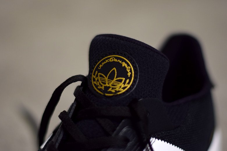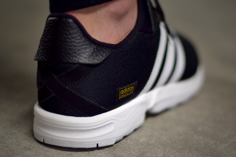 Mais le modèle dédié à la légende du skateboard a plutôt une approche lifestyle. Son allure running lui confère une fonction plutôt « après-skate ». Les amateurs des trois bandes auront remarqué la ressemblance avec sa grande soeur, l’adidas ZX Flux. On a ici un chausson en mesh monté sur une semelle d’adidas ZX 8000. Mais le rendu est légèrement plus sophistiqué avec quelques illustrations de Gonzales, des bandes croisées au talon, un lace-lock avec le Schmoo, ce personnage imaginé par le skateur.