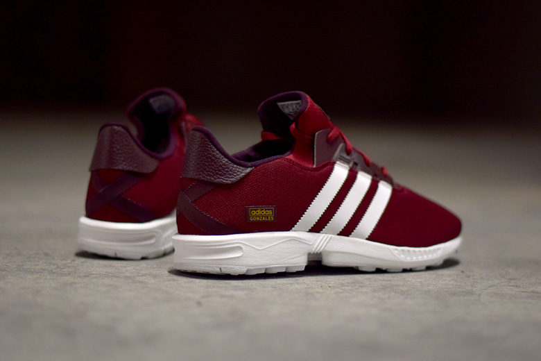 C’est en 2015 que sort l’adidas ZX Gonz. Ce modèle conçu pour l’après-skate ressemble un peu à une ZX Flux mais en moins agressive. On retrouve un chausson en mesh montée sur une semelle d’adidas ZX 8000. La paire est ici très sobre avec ce mix de bordeaux et de blanc. On retrouve la touche graphique du Gonz notamment sur la languette et les semelles intérieures.