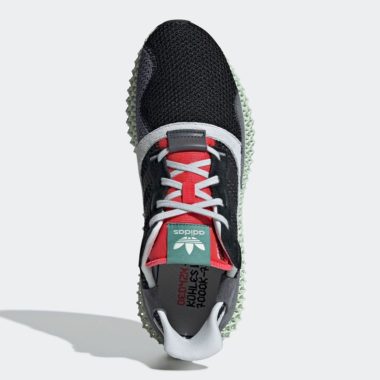 La paire reprend certains codes du coloris White récemment commercialisé. La différence notable avec cette Black Onix est le recours à un coloris plus foncé pour l’empeigne qui se traduit par une base en Primeknit noir agrémentée de couches grises suédées, un matériau déjà plébiscité sur la série des ZX originelles. En complément, la languette rose apporte un contraste additionnel et fait écho à un élément de l’outsole de même couleur. Le patch vert du branding ajoute une touche originale et lie cette teinte à la semelle extérieure à son tour. Les semelles de confort, elles, constituent le seul élément en cuir de la chaussure. L’intégralité de la semelle verte « Ash Green » a été conçue via un imprimé 4D rendu possible grâce à la technologie Digital Light Synthesis. À la manière du Boost à ses débuts, cette teinte bien spécifique est devenue indissociable des produits 4D d’adidas.