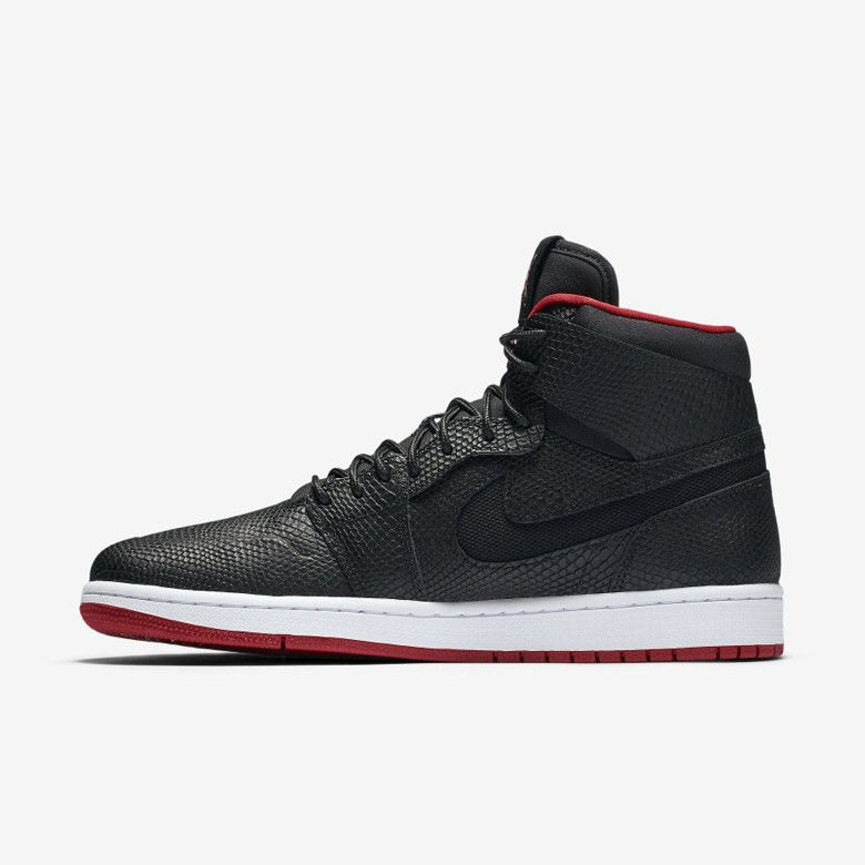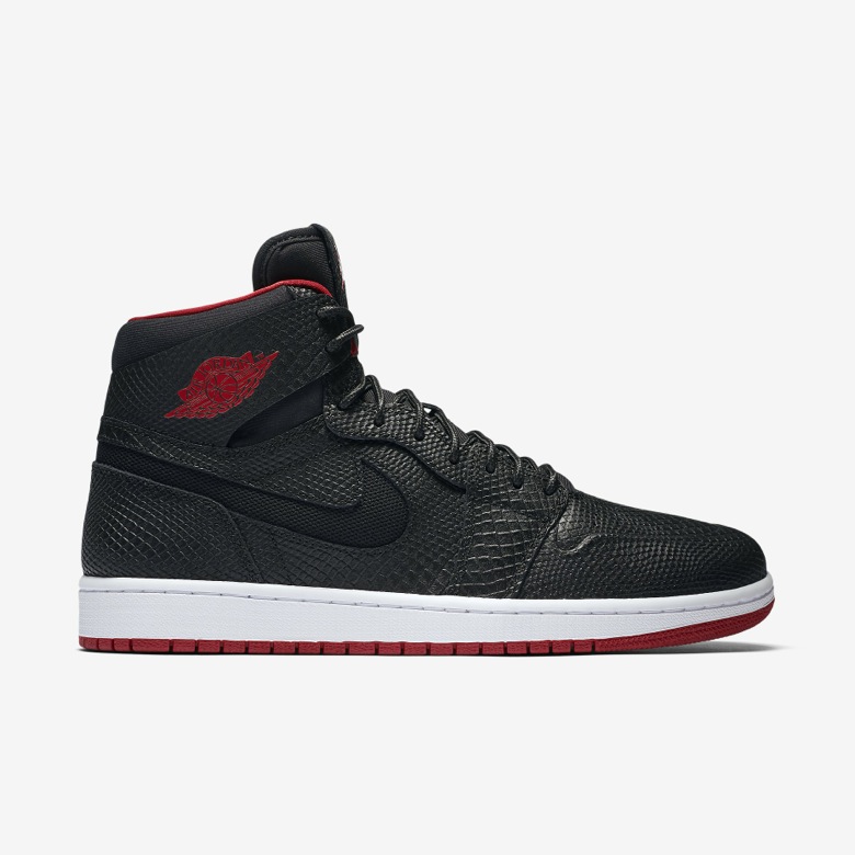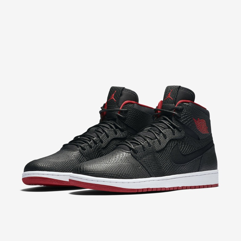Pour la saison Summer 2016, cette sneaker sera recouverte d’un cuir « serpent » sur quasiment toute son empeigne. Le Swoosh normalement cousu sur le panneau latéral sera ici découpé dans la pièce de cuir pour laisser apparaitre un mesh noir. Cette Air Jordan 1 High Nouveau Snake disposera d’un coloris peu surprenant puisqu’il sera composé de noir et de rouge, les couleurs des Chicago Bulls.