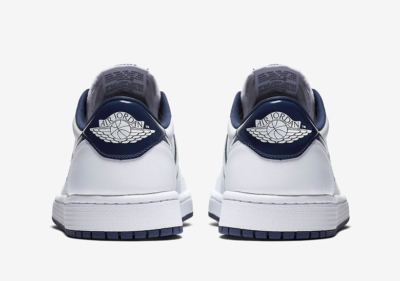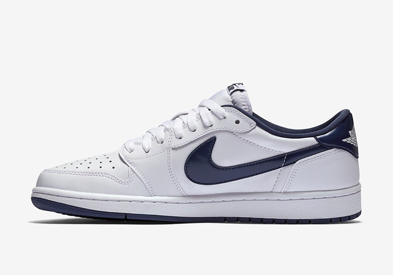 Pour la collection Spring 2016, la marque réédite la Air Jordan 1 Low Metallic Navy. Ici le bleu marine ne brille pas autant que la version originale sortie en 1985 mais le rendu est tout de même réussi. Le logo Wings au talon apporte cette petite touche vintage qui ravira les amateurs. La forme des sneakers est également affinée, bien retravaillée.