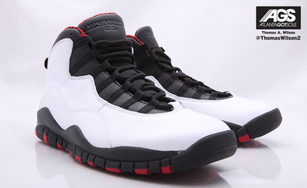 Annoncé à maintes reprises ces dernières saisons, la Air Jordan 10 Chicago fera bien son retour en janvier 2012. Elle est arrivée un peu plus tôt aux USA et c’est donc l’occasion de voir des photos du modèle qui sera disponible en boutique.