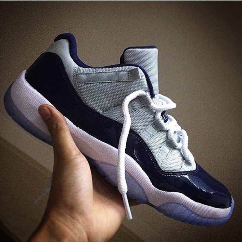 Les designers de Jordan Brand ont de nombreuses surprises pour les 30 ans de la marque avec notamment la réédition de la Air Jordan 11 Low dans plusieurs coloris. Après vous avoir présenté la Air Jordan 11 Low Bred ou encore Cobalt, nous découvrons les premières images de la version aux couleurs de l’université de Georgetown.