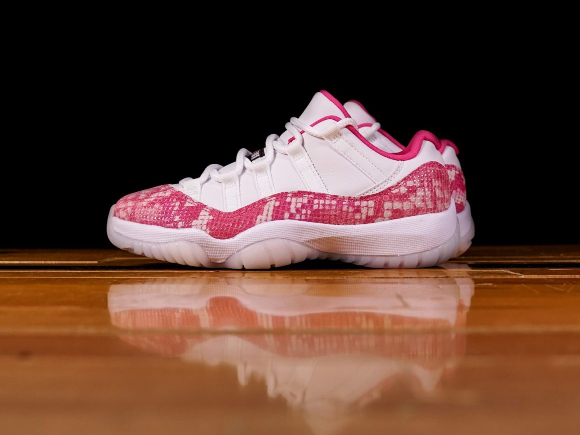 Cette silhouette, souvent considérée comme l’une des paires les plus emblématiques de la ligne Jordan Brand, est rééditée dans sa version Pink Snakeskin comme l’édition sortie en 2013 proposée dans le même traitement. Ce modèle iconique imaginé par Tinker Hatfield, designer Nike mondialement reconnu, est proposé dans une version basse aux teintes rosées destinée à la gent féminine. Dû à l’engouement des précédentes versions de la « Snakeskin », comme la grey ou encore la navy, la marque décide donc de proposer un nouveau colorway qui sortira début mai.