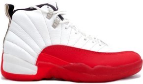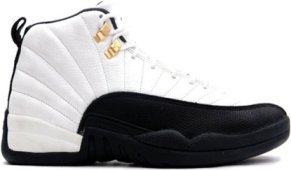 Le modèle Air Jordan 12 sort pour la première fois en 1996. Michael Jordan gagne avec la Air Jordan 12 son cinquième titre NBA. Cette paire de sneakers s’inspire du drapeau japonais et est la première à être commercialisée sous la marque Jordan Brand. Elle est par conséquent dépourvue de tout logo Nike.