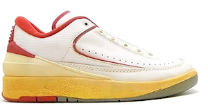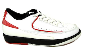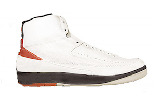 Le modèle Air Jordan 2 sort pour la première fois en 1986. Le design de cette paire de sneakers a été réalisé par Bruce Kilgore et Peter Moore. La Air Jordan 2 présente deux particularités notables : elle ne laisse pas apparaître l’emblématique swoosh de la marque et est fabriquée en Italie. C’est également avec ce modèle que Michael Jordan remporte son premier Slam Dunk contest.