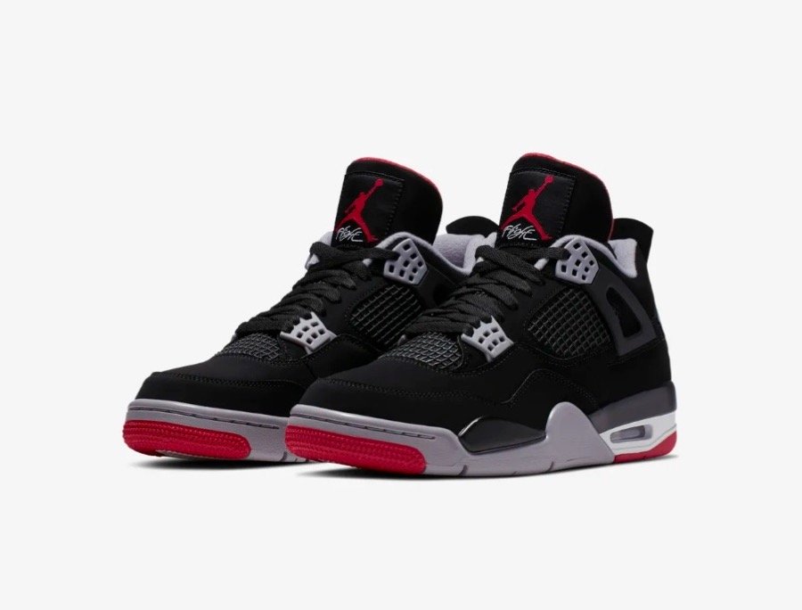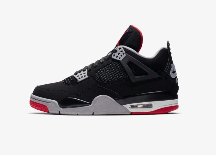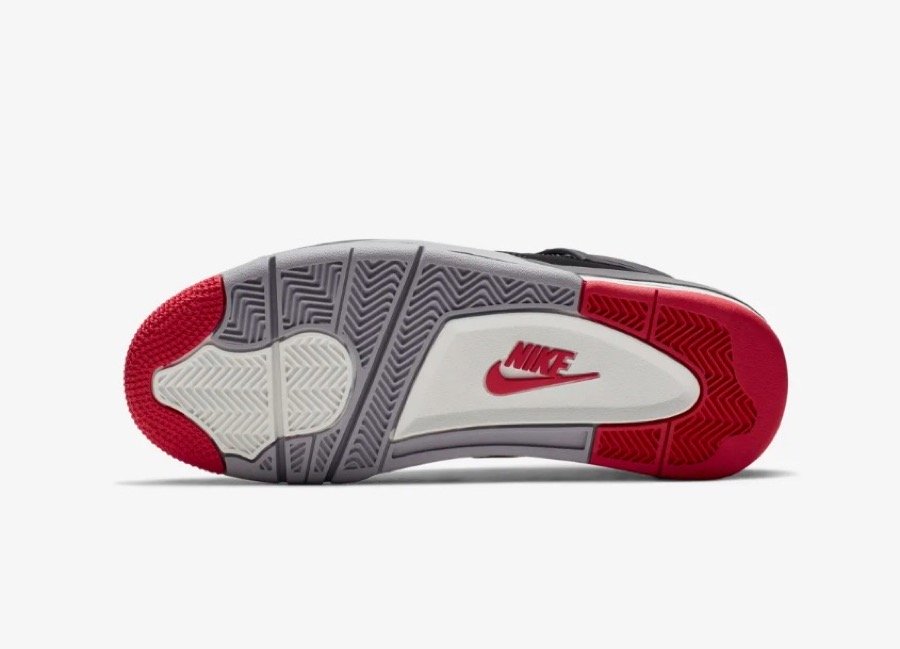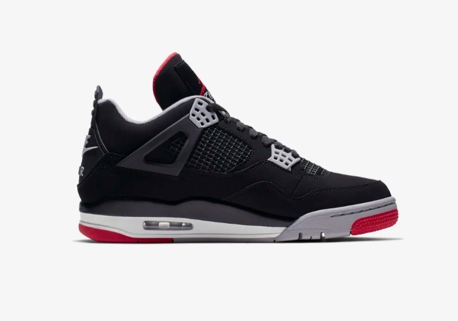 Pour le trentième anniversaire de l’Air Jordan 4, l’édition Black/Cement ou encore Bred (pour Black/Red) est rééditée dans sa condition d’origine.