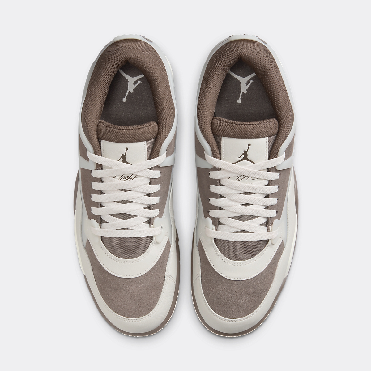 La construction de la Air Jordan 4 RM Reverse Mocha présente une empeigne basse composée de cuir suédé marron clair, offrant à la fois une texture riche et une durabilité accrue. Ce matériau habille la toebox et les passages de lacets. Ces derniers sont renforcées par du TPU blanc, contrastant légèrement avec le cuir blanc cassé du garde-boue avant. Les lacets crème se superposent à une languette marron, dont le haut est orné d’un Jumpman. Le talon est embossé d’un logo Nike Air marron, assorti à la partie inférieure de la semelle intermédiaire. Elle est liserée de blanc et repose sur une semelle extérieure crème. Le résultat est une construction équilibrée et potentiellement classique de cette nouvelle version de la Air Jordan 4, notamment mise en avant par le célèbre rider Nigel Sylvester.
