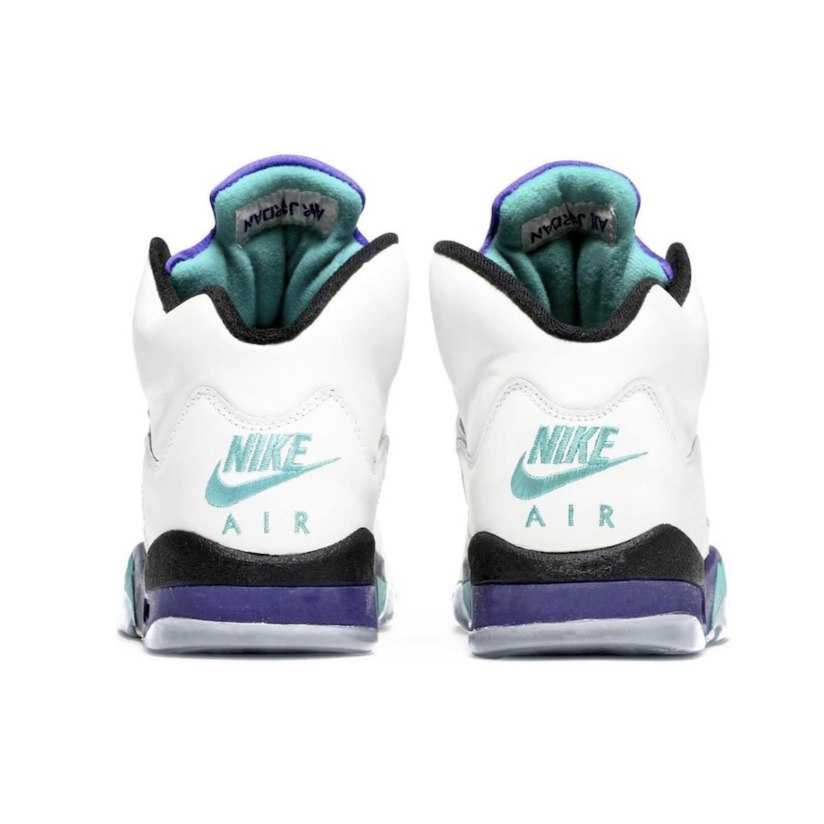 En 1990, Nike et Tinker Hatfield créent la Air Jordan 5, une silhouette qui allait devenir une icône dans l’univers des sneakers. Inspirée par les avions de chasse de la Seconde Guerre mondiale, la Air Jordan 5 introduit des innovations telles que les filets en TPU sur les panneaux latéraux et une semelle extérieure translucide. Parmi les coloris originaux de ce modèle, la déclinaison Grape se distingue par son audacieuse combinaison de blanc, de violet et de vert, devenant rapidement une icône du modèle.