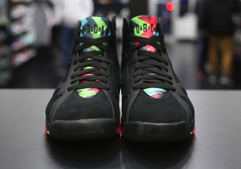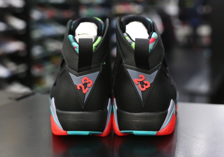 Le septième modèle de la saga Air Jordan célèbre, en cette année 2015, son vingt-troisième anniversaire et les designers de la marque semblent avoir prévu quelques surprises. Michael Jordan est véritablement passionné par les Looney Tunes et grâce au succès de la Air Jordan 7 « Hare » (également nommée « Bugs Bunny ») la marque souhaite honorer un autre personnage de la série, Marvin le Martien. Toutefois, cette paire de sneakers se nomme « Barcelona Nights » pour des raisons de copyright et fait donc référence à la médaille d’Or remportée par Mike et la Dream Team lors des Jeux Olympiques de Barcelone en 1992.